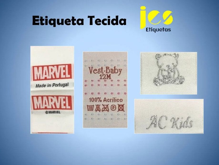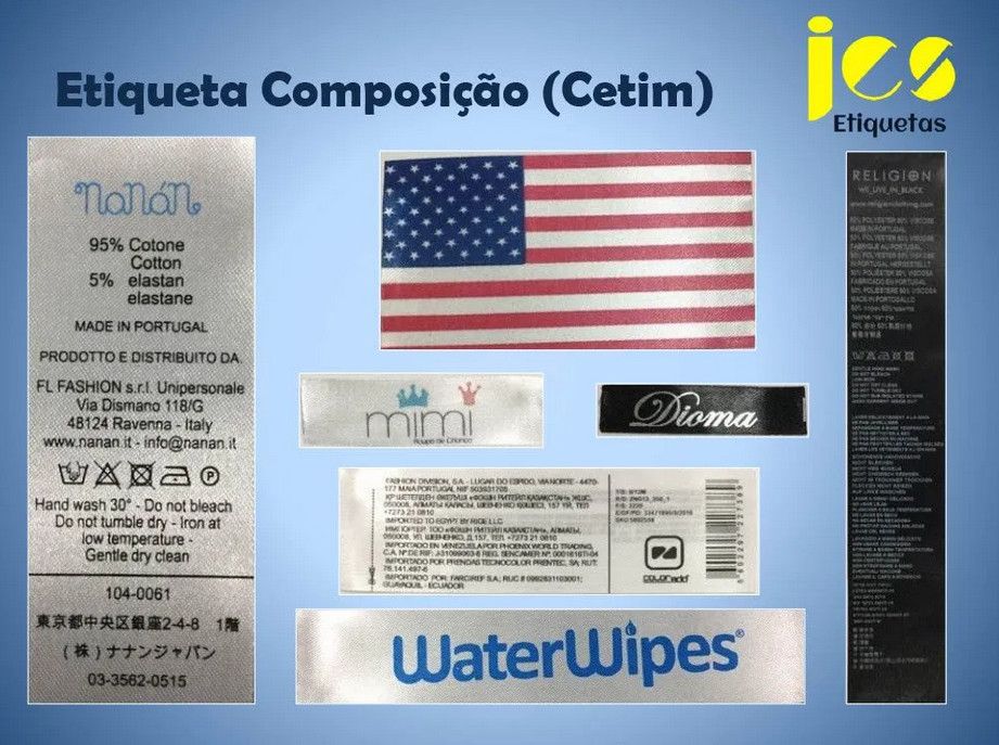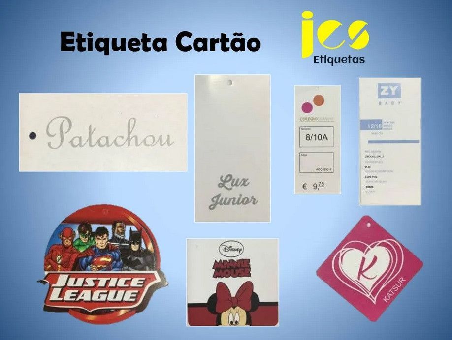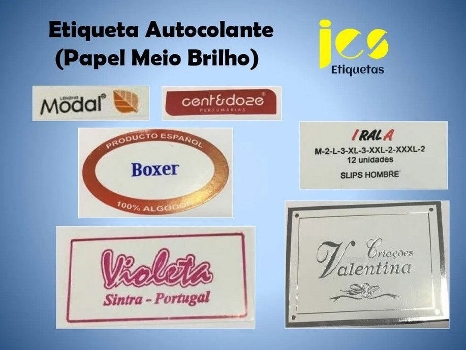 Etiquetas autocolantes, Etiquetas de cartão, Etiquetas tecidas, Etiquetas de composição, etc